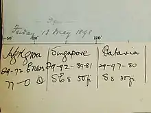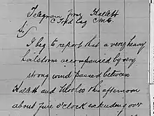 The folios grew out of Todd's desire to inform the colonists of South Australia of the immense size of weather systems and that in southern Australia, they generally progressed from west to east and not from east to west as commonly assumed by the early colonists.[2] To accomplish this, Todd displayed daily the last 6 synoptic charts for public viewing then bound and stored them in the folios.[3] The Todd weather folios consist not only of synoptic charts, but also include clippings from newspapers detailing weather statistics and events for all the eastern colonies of Australia. Newspapers from Brisbane, Sydney and Melbourne were collected as they came off the inter-colonial trains and were processed for pasting up next to the corresponding synoptic chart.