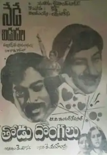 Thodu Dongalu (transl. Joint thieves) is a 1981 Telugu-language film directed by K. Vasu. The film stars Krishna Ghattamaneni, Chiranjeevi, Madhu Malini, Geetha and Rao Gopal Rao in important roles.