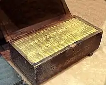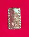 The Ichibuban (一分判) could be either made of silver or gold, in which case it was a quarter of a Koban. The gold Ichibuban of 1714 (佐渡一分判金) had a weight of 4.5 g, with 85.6% of gold and 14.2% of silver. The silver Ichibuban from 1837 to 1854 (Tenpō Ichibugin, 天保一分銀, "Old Ichibuban") weighed 8.66 g, with an alloy of 0.21% gold and 98.86% silver.[4]