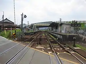 The station consists of two opposed side platforms connected by a footbridge.