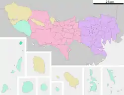 - Tokyo has numerous outlying islands, which extend as far as 1,850 km (1,150 mi) from central Tokyo. Because of the islands' distance from the administrative headquarters of the Tokyo Metropolitan Government in Shinjuku, local subprefectural branch offices administer them. The Izu Islands are a group of volcanic islands and form part of the Fuji-Hakone-Izu National Park. The islands in order from closest to Tokyo are Izu Ōshima, Toshima, Nii-jima, Shikine-jima, Kōzu-shima, Miyake-jima, Mikurajima, Hachijō-jima, and Aogashima. The Izu Islands are grouped into three subprefectures. Izu Ōshima and Hachijojima are towns. The remaining islands are six villages, with Niijima and Shikinejima forming one village. The Ogasawara Islands include, from north to south, Chichi-jima, Nishinoshima, Haha-jima, Kita Iwo Jima, Iwo Jima, and Minami Iwo Jima. Ogasawara also administers two tiny outlying islands: Minami Torishima, the easternmost point in Japan and at 1,850 km (1,150 mi) the most distant island from central Tokyo, and Okinotorishima, the southernmost point in Japan.[54] Japan's claim on an exclusive economic zone (EEZ) surrounding Okinotorishima is contested by China and South Korea as they regard Okinotorishima as uninhabitable rocks which have no EEZ.[55] The Iwo chain and the outlying islands have no permanent population, but hosts Japan Self-Defense Forces personnel. Local populations are only found on Chichi-Jima and Haha-Jima. The islands form both Ogasawara Subprefecture and the village of Ogasawara, Tokyo.