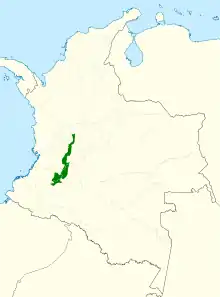 Its natural habitat is subtropical or tropical moist montane forest between 1200 and 2300 m.a.s.l. in the eastern slopes of the central Andean mountain range. It is threatened by habitat loss. [2]