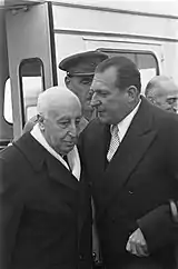 Though already at the retirement age, Florida remained active in a number of enterprises, mostly related to mineral resources and dependent businesses, like construction or pharmaceuticals; some of them, like RUMHE,[136] landed hefty contracts in prestigious locations, like the Madrid Gran Vía.[137] In the 1950s he regularly featured in societé columns, attending aristocratic feasts related and unrelated to his own family. His political engagements were almost inexistent, except that he kept attending the Mártires de la Tradición sermons.[138] This changed abruptly in the mid-1950s. In 1956 Florida was awarded Gran Cruz del Mérito Civil, a very prestigious Francoist honor.[139] In 1957 he was among 70-odd Carlists who concluded their longtime rapprochement with the Alfonsist claimant, Don Juan. Satisfied that formal acceptance of Traditionalist principles rendered him fit for succession also from the Carlist perspective, they declared him the legitimate heir to the throne.[140] Florida, one of the most distinguished of the so-called "Estorilos", entered the claimant's Consejo Privado, the post retained until the end of his life.[141]