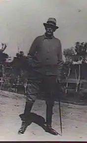 in 1899 he transferred to South Africa to serve in the Second Boer War. Attached to the Imperial Light Horse, he took part in the relief of Ladysmith, and received the rank of captain supernumerary to the establishment on 5 April 1900. For a few months in 1901 he was in command of two West Australian Mounted infantry contingents, and was severely wounded.[5][1][4] He was confirmed as captain in the Royal Artillery on 8 January 1902,[6] and served in South Africa till the end of the war in June 1902, after which he left Cape Town in the SS Plassy in August, returning to Southampton the following month.[7] For his war service, he was mentioned in despatches (including the final despatch by Lord Kitchener dated 23 June 1902,[8]) and received a brevet promotion as major on 22 August 1902.[9]
