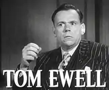 Tom Ewell (born Samuel Yewell Tompkins, April 29, 1909 – September 12, 1994) was an American film, stage and television actor, and producer.[1] His most successful and most identifiable role was that of Richard Sherman in The Seven Year Itch, a character he played in the Broadway production (1952–1954) and reprised for the 1955 film adaptation. He received a Tony Award for his work in the play and a Golden Globe Award for his performance in the film. Although Ewell preferred acting on stage, he accepted several other screen roles in light comedies of the 1950s, most notably The Girl Can't Help It (1956).[2] He appeared in the film version of the musical State Fair (1962) and in a small number of additional ones released between the early 1960s and 1980s.