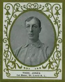 Thomas Jones (June 21, 1874 – June 19, 1923) was an American baseball player. He played professional baseball, principally as a first baseman, from 1902 to 1915, including eight years in Major League Baseball with the Baltimore Orioles (1902), St. Louis Browns (1904–1909), and Detroit Tigers (1909–1910). He compiled a .251 career batting average in 813 major league games.
