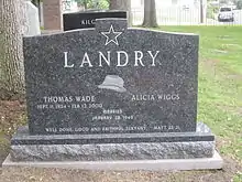 Landry died on February 12, 2000, after battling leukemia. Landry's funeral service was held at Highland Park United Methodist Church, where he was an active and committed member for 43 years. He was interred in the Sparkman-Hillcrest Memorial Park Cemetery in Dallas. A cenotaph dedicated to Landry, complete with a depiction of his fedora, was placed in the official Texas State Cemetery in Austin at the family's request.[20]