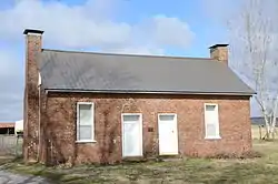 The Tom Smith House is a historic house on Arkansas Highway 74, east of Elkins, Arkansas in Washington County. It is a single-story brick structure, with a side gable roof, end chimneys, and a four-bay front facade. The bricks, which were locally made, are four courses deep, and end in a cornice shaped out of S-shaped molded bricks, an extremely rare detail. The front facade is asymmetrically arranged, with two doors in the center bays and sash windows in the outer bays. Built c. 1834, it is a rare regional example of late Georgian architecture, and is historically significant for its builder, Thomas Smith, who was one of the earliest white settlers of the area. The house stands behind a more recent (c. 1900) frame house on more than 30 acres (12 ha) of land on the north side of AR 74.[2]