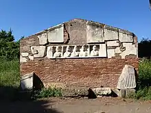 The Tomb of Hilarus Fuscus(Latin: Hilarus Fuscus or Hilarius Fuscus) is a funerary monument located near the fourth mile of the Appian Way or Via Appia Antica, to the southeast of Rome.[1][2] The tomb was restored by Luigi Canina in the mid-1800s.[3] An inscription bearing the names of those represented on the masonry disappeared in the period between 1978 and 1998. The sculptures are copies: the originals are now in the National Museum of the Baths of Diocletian.[4]