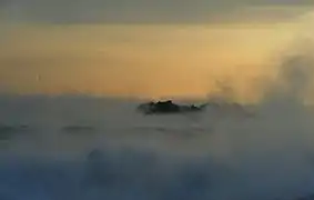 It is the only underwater tomb in the world. It looks like normal rocks from a distance. There is a smaller rock to the south. The area is surrounded by small rocks that are only seen at low tide intervals, making them look like stone beams. It is owned by the Gyeongju National Museum. The monument collapsed early, and two large sections and one small stone were discovered so far, but one stone is not handed over. The stone is a reddish-brown igneous rock with a maximum height of 52cm, 64cm wide and 24cm thick, and the small section is carved with a 2-legged triangle.[2]'
