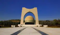 Three monuments in Zawra Park commemorate Iraq's fallen soldiers; The Monument to the Unknown Soldier (pictured), the Victory Arch (completed in 1989) and the Al-Shaheed Monument (also known as the Martyrs' Monument, completed in 1983). The Monument to the Unknown Soldier was constructed between 1979 and 1982, and replaced an earlier Unknown Soldier's Monument built in 1959 in a different location, but dismantled when the current monument was inaugurated. | |