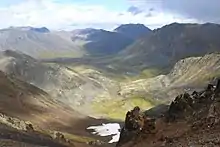 Tombstone Territorial Park is a territorial park in the Yukon, one of three territories in Canada. It is located in central Yukon, near the southern end of the Dempster Highway, stretching from the 50.5 to the 115.0 kilometre marker. The park protects over 2100 square kilometres of rugged peaks, permafrost landforms and wildlife, including sections of the Blackstone Uplands and the Ogilvie Mountains.[1] The Park is named for Tombstone Mountain's resemblance to a grave marker.