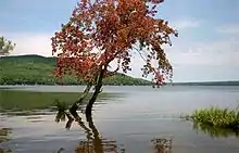 Fish include brook, grey, brown, and rainbow trout, landlocked atlantic salmon, walleye, small-mouth bass, and mullet. A number of rare animal species, including the endangered wood turtle (Clemmys insculpta), have been documented within the wetlands of the Tomifobia valley,[4] the Appalachian Corridor Appalachien (ACA). Avians in the area include bald eagles. Aquatic mammals include North American river otter and North American beaver.