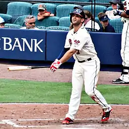 The Braves invited La Stella to spring training in 2014.[9][10] He began the 2014 season with the Gwinnett Braves of the Class AAA International League, and debuted at the major league level on May 28, hitting two singles in his first game.[11] La Stella hit his first major league home run on August 8, 2014, against Stephen Strasburg of the Washington Nationals.[12] He finished the year with a .251 batting average in 93 games.[13]