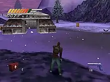 As work began on the game, Botti watched all of the James Bond films released up to that point.[7] For the sake of gameplay, the game includes some differences from the film such as skiing,[8][6] a feature that Black Ops was intent on adding. Scuba diving had also been planned.[9][10][11] Programmer Will Botti began working on the game in November 1997, and was given a short period of 30 days to create a game engine for the skiing levels. Will Botti would become the project director in April 1998.[12]