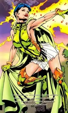 Tomorrow Woman is a fictional character, an android in stories published DC Comics. She debuted in JLA #5 (May 1997), and was created by Grant Morrison and Howard Porter.[1] Within the DC Comics canon, she is created by the mad scientist super-villains Professor Ivo and T.O. Morrow. Given human-like physical characteristics and false memories of a human life, Tomorrow Woman believes herself to be a new superhero born with psionic abilities due to a "four-lobed brain". Her true purpose is to infiltrate and then kill the Justice League. In her first appearance, she says she exclusively has telekinetic abilities, but a later flashback issue of JLA: Tomorrow Woman (1998) reveals that she also has telepathic abilities.