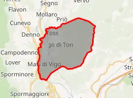 Ton borders the following municipalities: Taio, Cortaccia sulla strada del vino, Vervò, Denno, Roverè della Luna, Campodenno, Mezzocorona, Sporminore, Spormaggiore and Mezzolombardo.