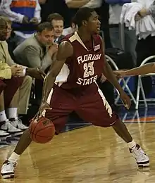 Douglas submitted his name for the NBA draft in the 2005 offseason, but did not sign with an agent, therefore allowing him to stay eligible for college when he later withdrew from the process.[4][5] Despite Douglas' success at Auburn, he and his family were unhappy with his position on the basketball team. Douglas wanted to be the team's point guard, which he believed was his more natural position and the one he would play in the NBA. However, team management did not accede to his request, prompting him to request a transfer. Then-coach Jeff Lebo granted Douglas his scholarship release on the condition that he transfer to a non-SEC university. On June 29, 2005, Douglas enrolled at Florida State University, where coach Leonard Hamilton allowed him to play point guard.[6] Because National Collegiate Athletic Association (NCAA) rules stipulate that players who transfer must sit out the following season, Douglas only began playing with the team in the 2006–07 season, although he still practiced with them during 2005–06.[2][4][5]