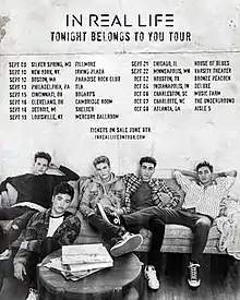 The Tonight Belongs to You Tour was the first headlining concert tour by American boy band In Real Life. The tour began on September 9, 2018, in Silver Spring, and concluded November 11, 2018, in Cebu City.[1]
