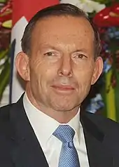 Anthony John Abbott AC (/ˈæbət/;[3] born 4 November 1957) is an Australian former politician. He served as the 28th prime minister of Australia from 2013 to 2015, holding office as the leader of the Liberal Party of Australia.[4]