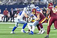 Pollard continued his role as a backup to Ezekiel Elliott to go along with some kickoff return duties in the 2020 season.[19] In Week 15 against the San Francisco 49ers, Pollard recorded 132 yards from scrimmage and two rushing touchdowns during the 41–33 win.[20] Overall, he appeared in all 16 games, of which he started two, in the 2020 season. He finished with 101 carries for 435 rushing yards and four rushing touchdowns to go along with 28 receptions for 193 receiving yards and one receiving touchdown.[21]