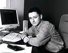 Warriner (Malton, October 19, 1968) is married to artist Tanya Riarey. His daughter, Ella, is credited in Sticky Blocks and The Director's Cut. Professionally, he is highly interested in the latest hardware and software developments.[41][42] His dream setup (2011) is an iMac with a 2500 x 1600 screen and a massive SSD.[43] Once asked about which of his games he was most proud of, his answer was that it would probably be Beneath a Steel Sky, as it was hard to do with very limited resources, and achieved a minor cult status.[15] Warriner is an active member of Revolution's own forum and has accounts on various social media.