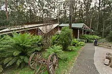 Toolangi was the home of the poet C. J. Dennis, the author of The Songs of a Sentimental Bloke, Jim of the Hills, The Glugs of Gosh, Rose of Spadgers, The Singing Gardens and Ginger Mick, to name a few. Dennis joined artist Hal Waugh on an expedition to Toolangi in 1908. Dennis stayed on after the expedition, attracted by the ambience of the area, he was also a business partner in one of the many sawmills of the area—St Leonards Sawmill. His work captured the feel of the bush and the Australian characters, both of the bush and the pubs. In 1915, he purchased 3.5 acres (14,000 m2) for 22 pounds. This included a mill house. Over a period of 10 years, with the help of a local handyman, they converted the mill house to a two-storey house named "Arden".[5] His house has long since burned down, but his gardens remain in the care of Jan and Vic Williams, where they operate their tea rooms, The Singing Gardens, and are open to the public.