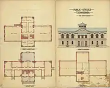 Construction of the new Toowoomba law courts and public offices began in 1876. They replaced an earlier, smaller building, also located in Margaret Street, which was constructed in 1863. The new building was much larger than the previous one and of a more imposing design, indicative of the sense of prosperity and permanence felt by the town.[1]