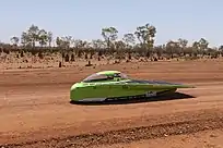On October 13, 2019, Top Dutch Solar Racing started in the pole position of the 15th Bridgestone World Solar Challenge in Darwin, Australia.[7] Five days later, on October 18, 2019, Green Lightning reached Adelaide and finished 4th after Bluepoint of Agoria Solar Team, Tokai Challenger of Tokai University Solar Car Team and Electrum of University of Michigan Solar Car Team.[8][9] Due to technical issues and accidents of Solar Team Twente and Vattenfall Solar Team, Top Dutch Solar Racing was the best Dutch team participating in the challenger class during the BWSC 2019.[10] The team also received the Excellence in Engineering Award as recognition for its good performance considering the lack of experience of the team.[11][9]