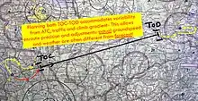 In aviation, the top of climb, also referred to as the TOC or T/C, is the computed transition from the climb phase of a flight to the cruise phase, the point at which the planned climb to cruise altitude is completed. The top of climb is usually calculated by an on-board flight management system and is designed to provide the most economical climb to cruise altitude or to meet some other objective (fastest climb, greatest range, etc.). The top of climb may be calculated manually with considerable effort.[1]