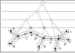 We would notice that all the nodes of the corresponding top tree are uniquely mapped into the edges of this multilevel partition. There may be some edges in the multilevel partition that do not correspond to any node in the top tree, these are the edges which represent only a single child in the level below it, i.e. a simple cluster. Only the edges that correspond to composite clusters correspond to nodes in the top tree