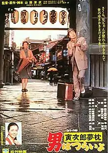 Tora-san's Dream-Come-True (男はつらいよ 寅次郎夢枕, Otoko wa Tsurai yo: Torajirō Yumemakura) a.k.a. 'Torasan Appears in a Dream[1] is a 1972 Japanese comedy film directed by Yoji Yamada. It stars Kiyoshi Atsumi as Torajirō Kuruma (Tora-san), and Kaoru Yachigusa as his love interest or "Madonna".[2] Tora-san's Dream-Come-True is the tenth entry in the popular, long-running Otoko wa Tsurai yo series.