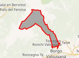 Torcegno borders the following municipalities: Palù del Fersina, Telve di Sopra, Fierozzo, Ronchi Valsugana, Roncegno Terme, Telve di Sopra and Borgo Valsugana.