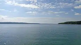 At the south end of the lake is a sandbar, locally known as the Torch Lake Sandbar. This sandbar is a popular summer tourist destination, especially around the Fourth of July.[8] The popular location has been considered controversial by locals, due to boat traffic, and, in 2021, a COVID-19 outbreak among the Fourth of July partygoers.[9][10]