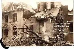 ![]() Damage from an F3 tornado along Enright Avenue in St. Louis | |