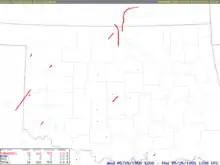 Oklahoma tornado tracks during the 1955 Great Plains tornado outbreak.