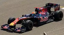 The Toro Rosso STR5 was a Formula One motor racing car designed and built by Scuderia Toro Rosso for the 2010 season. The car was a significant change for the team as it represented the first chassis they had indigenously-designed and built on their own; prior to 2010, the car was identical to that of parent team Red Bull Racing, circumventing a ban on customer chassis by having both cars designed by a third party. The car, driven by an unchanged lineup from 2009 of Sébastien Buemi and Jaime Alguersuari, was unveiled at the first official test of 2010 on February 1, at the Circuit Ricardo Tormo in Valencia.[3]