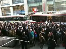 After being forced to make the information public, the TTC ensured that it also released information demonstrating the efforts being taken to intervene and prevent such incidents in the future.[97] The TTC's "Gatekeeper Program" is an internal course available for front line staff to learn and identify the warning signs of someone who may be suicidal, and help them or try to prevent them from doing so on the transit system. The TTC also has partnerships with St. Michael's Hospital and other institutions to assist with both prevention programs and counselling programs for staff who have witnessed such incidents.[98] The TTC maintains that it will continue its policy of not reporting suicides and suicide-related statistics,[95] however in February 2010, statistics from 2008 and 2009 were released in a public report to the Commission regarding suicide and suicide prevention.[99] On November 10, 2014, separate suicide attempts were made, halting service on two lines. Following this, platform screen doors were discussed, but the TTC does not yet have a plan for funding the $800 million required to upgrade all 75 subway stations, which also includes the December 2017 extension of the University segment of Line 1 to Vaughan Metropolitan Centre station.[100]