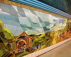 | North York Centre | Top of the North Hill—1850s | Nicholas and Susana Graven | Mural made of over 5000 pieces of glazed ceramic tile, on the northbound platform | ![]() | |