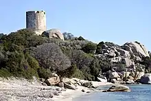 The Tower of Caldarellu or the Tower of Figari (Corsican: Torra di Caldarellu) is a Genoese tower located in the commune of Pianotolli-Caldarello (Corse-du-Sud) on the southwest coast of the Corsica. The tower sits at an elevation of 16 metres (52 ft) on the north shore of the Baie de Figari.