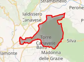 Torre Canavese borders the following municipalities: Castellamonte, Quagliuzzo, Strambinello, Baldissero Canavese, San Martino Canavese, Bairo, and Agliè.
