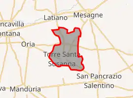 ![]() Torre Santa Susanna Location of Torre Santa Susanna in Italy ![]() Torre Santa Susanna Torre Santa Susanna (Apulia) | |
