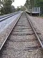 Standard gauge track on dual gauge concrete sleepers in August 2008