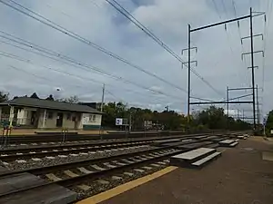 ![]() The station at Torresdale as seen in September 2020 from the Trenton-bound platform. | ||||||||||||||||||