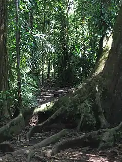 As of 2006, the known flora is represented by 779 species, of which 36 are endemic to the country.[11] According to other sources the national park ecosystem has more than 400 species of trees and about 2,200 species of other plants.[4][6] The wet lowland Atlantic slopes (mostly below 500 metres (1,600 ft)) of northern Costa Rica, particularly along the coast, form into mangrove forests. The forests in this region consist of the gavilán (Pentaclethra macroloba), caobilla (Carapa nicaraguensis), the almendro (Dipteryx oleifera) and the monkey pot tree (Lecythis ampla); the last two species (regional endemics of the lowlands found below 250 metres (820 ft)) are stated to be nearly endangered.[12] While 99% of mangrove forests are reported from the Pacific Coast of Costa Rica, only 1% is found in the Caribbean part of the park.[5]