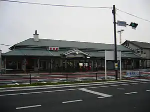The present station building was built in 1903. An extension in 1911 left the original Meiji era building structure intact. It is one of the oldest existing railway station buildings in Kyushu. Despite its historical value, the Saga City authorities decided, in May 2017, to build a new station building slightly to the south of the existing one. The new building will be a hashigami structure in which the station facilities would be located on a bridge spanning the tracks. The project would take about ten years to complete. The city authorities explained that a new building was necessary due to the limited space available in the present building but that it would consider measures to preserve and repurpose the historic structure.[11][12]