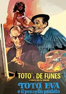 Toto in Madrid (Italian: Totò, Eva e il pennello proibito) is an Italian comedy film from 1959, directed by Steno, written by Vittorio Metz, starring Totò and Louis de Funès. The film is known under the titles: "Toto in Madrid" (English title), "Totò a Madrid", "Un coup fumant" (France), "La culpa fue de Eva" (Spain).