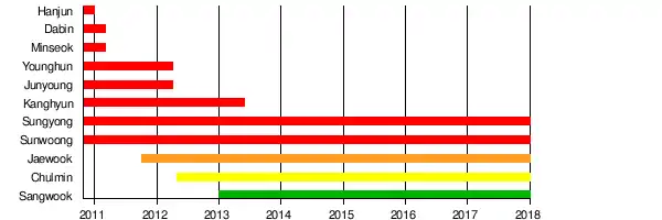 Touch (Hangul: 터치; shortened from The Original Charismatic Undeniable Homme) is a South Korean boy band formed by YYJ Entertainment in Seoul, South Korea.[1] The group currently consists of five members: Chulmin, Sungyong, Jaewook, Sunwoong and Sangwook.[2] They debuted on October 22, 2010 with the single "Me". Their fans are called "Touchables".