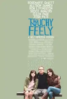 Touchy Feely is a 2013 film directed by Lynn Shelton and stars Rosemarie DeWitt as a massage therapist who develops a phobia to touching skin. Other cast members include Allison Janney, Ron Livingston, Scoot McNairy, Elliot Page and Josh Pais. The film premiered at the 2013 Sundance Film Festival where it was nominated for the Grand Jury Prize,[2] and was released on September 6, 2013. It gained a mixed critical reception, and grossed over $36,000 in the United States.