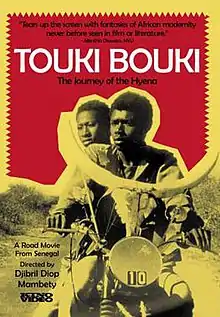 Touki Bouki (pronounced [tukki bukki], Wolof for The Journey of the Hyena) is a 1973 Senegalese drama film, directed by Djibril Diop Mambéty.[2] It was shown at the 1973 Cannes Film Festival[2][3] and the 8th Moscow International Film Festival.[4]